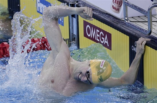Em meio a avalanche de melhoras da era dos trajes, só um recorde permaneceu. O 400 livre de Thorpe caiu por pouco em Roma, o histórico 800 de Janet Evans também, o 50 livre de Popov. Mas aquele 1500 de Grant Hackett em Fukuoka, os incríveis 14’34″56, este sobreviveu, o único, coroando um dos maiores fundistas da história. Foram exatamente 10 anos e 2 dias até que Yang Sun batesse em seu país o recorde mais velho da natação, nadando para 14’34″14, em uma prova linda.