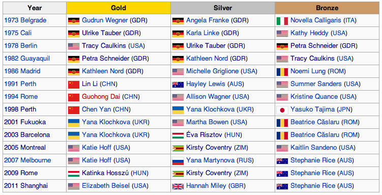 Recorde Mundial – Ye Shiwen – 4’28”43 – Olimpíadas de Londres, 2012 (sem trajes tecnológicos)