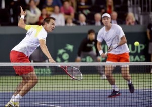 O jogo mais incrível do sábado coube aos tchecos e suíços. Jogando em Genebra, os atuais campeões entraram em quadra com Tomas Berdych e Lukas Rosol. Os donos da casa escalaram Stanislas Wawrinka e Marco Chiudineli. A vitória tcheca veio apenas no quinto set. Até aí nada de anormal. Só que Berdych e Rosol venceram o set decisivo por incríveis 24-22. A partida, que durou 7h02, foi a mais longa da história dos confrontos de duplas do tênis. Os tchecos lideram a série por 2×1.